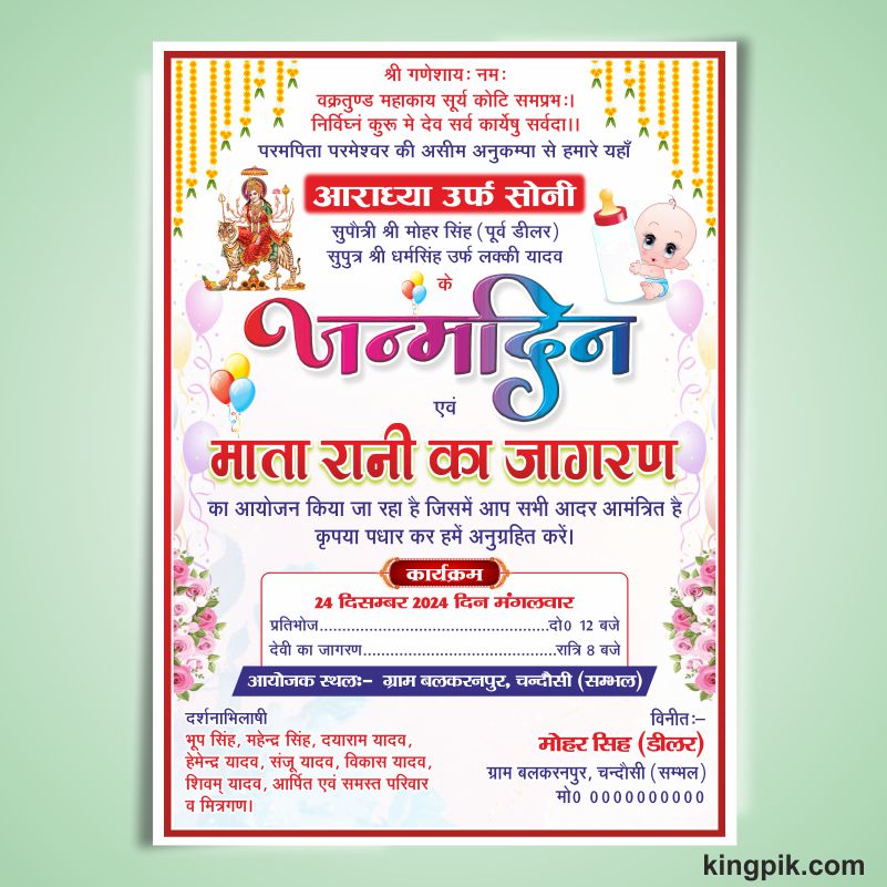 जन्मदिन एक खास अवसर होता है और उसका निमंत्रण भी खास होना चाहिए। एक सुंदर और प्रोफेशनल डिज़ाइन किया गया निमंत्रण कार्ड