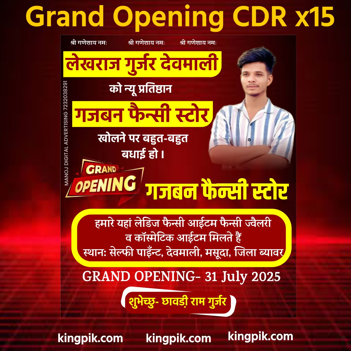 Is template ko aap shop inauguration, showroom launch, office opening, hospital opening, beauty parlour opening ya kisi bhi business launch event ke liye use kar sakte hain.