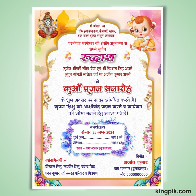Category: Banner/PosterTags: invitation card, Kua, Kua Poojan, Kua Poojan card, Kua Poojan invitation card