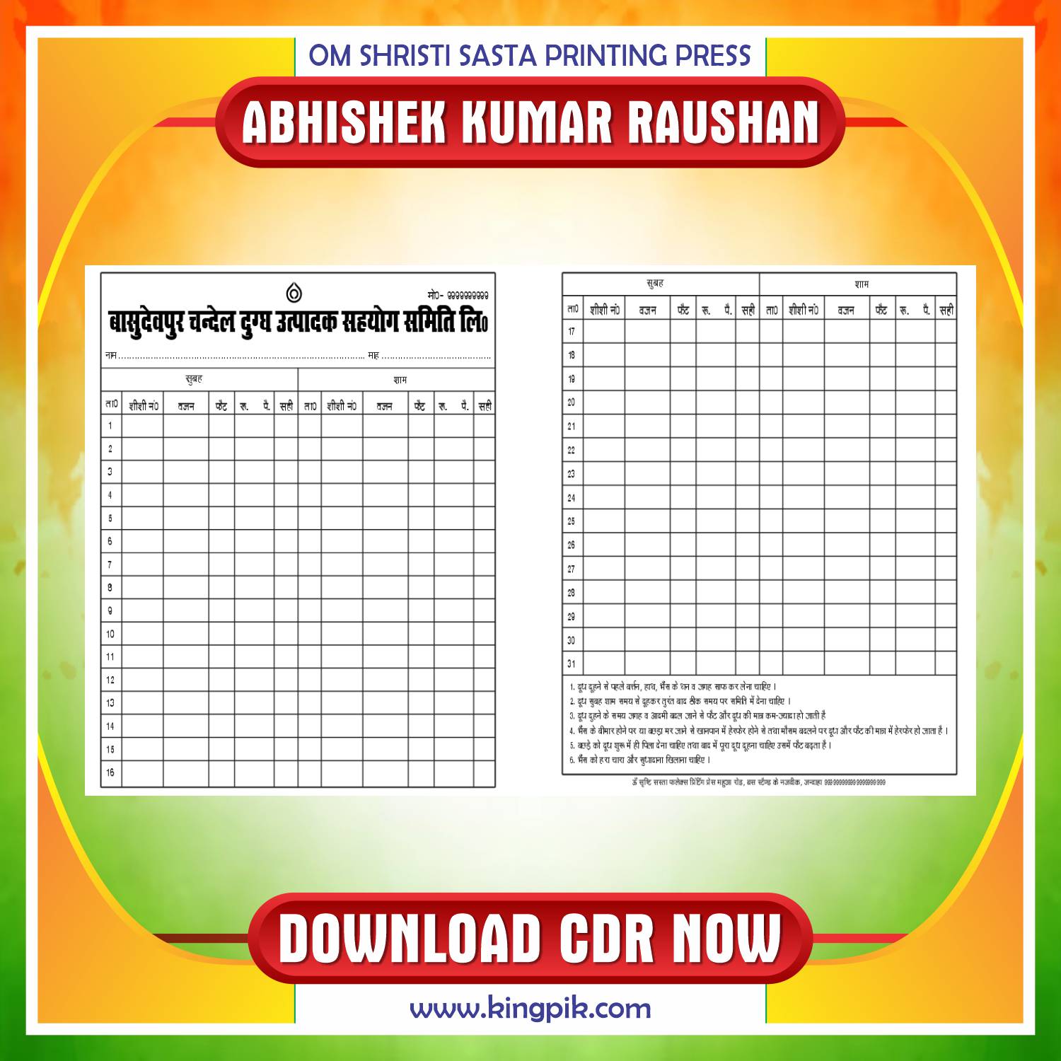 Latest & Best Dairy Card CDR File Design