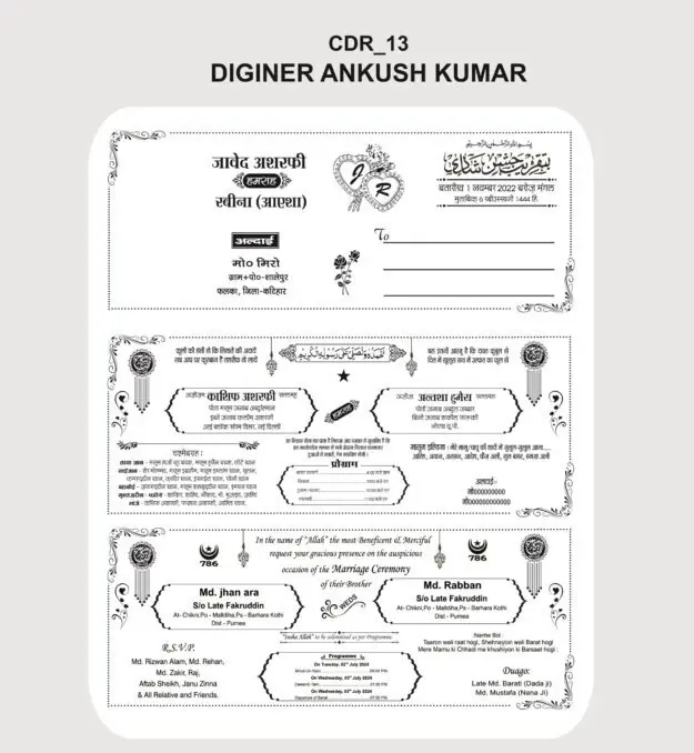 Muslim Shadi Card Design In Hindi and English CDR File