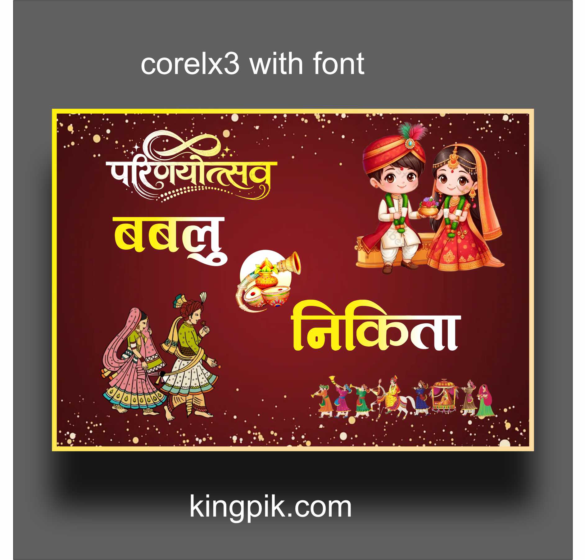 Yeh editable file format me available hai (CDR/compatible), jisme dulha-dulhan ke naam, wedding date, family details aur custom message easily change kiya ja sakta hai. Layout flex printing ke hisaab se properly set hai, jisse final output sharp aur professional milta hai.