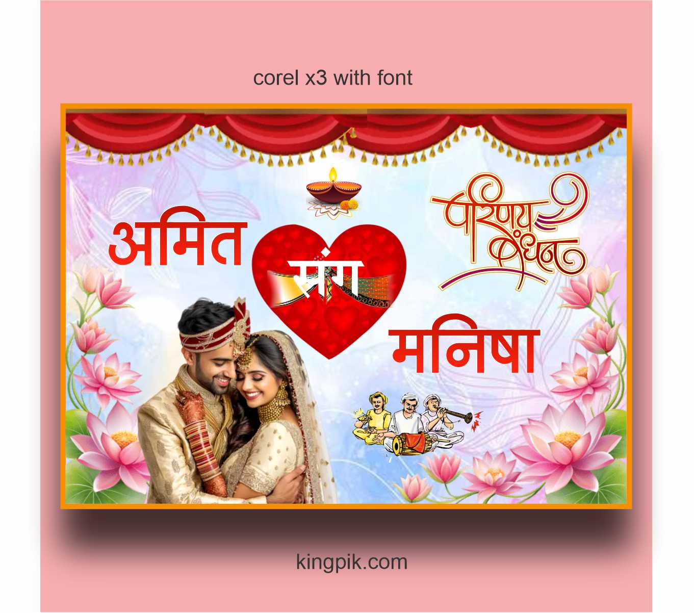 इस CDR फाइल को आप आसानी से CorelDRAW (X3 और ऊपर के वर्जन) में ओपन करके पूरी तरह एडिट कर सकते हैं। इसमें आप कपल की फोटो, नाम, कलर, फॉन्ट और टेक्स्ट को अपनी जरूरत के अनुसार बदल सकते हैं। डिजाइन में हाई क्वालिटी ग्राफिक्स, ट्रेडिशनल एलिमेंट्स और मॉडर्न स्टाइल का परफेक्ट कॉम्बिनेशन दिया गया है।